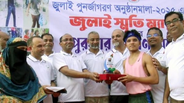 স্টাফ রিপোর্টার ॥ হবিগঞ্জে জুলাই পুনর্জাগরণ অনুষ্ঠানমালা-২০২৫ অংশ হিসেবে জুলাই স্মৃতি ম্যারাথন প্রতিযোগিতা ও পুরষ্কার বিতরন অনুষ্ঠিত হয়েছে। গতকাল শুক্রবার সকালে হবিগঞ্জ সদর উপজেলার ধুলিয়াখাল বাইপাস পয়েন্টে এ প্রতিযোগিতার উদ্ধোধন